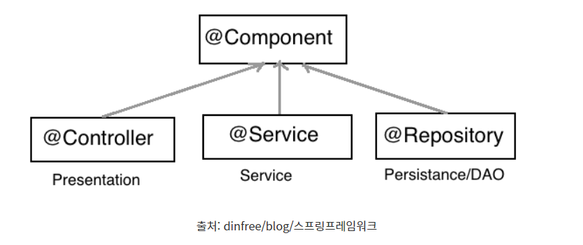 @Service, @Controller, @Repository는 모두 @Component를 상속받고 있다.